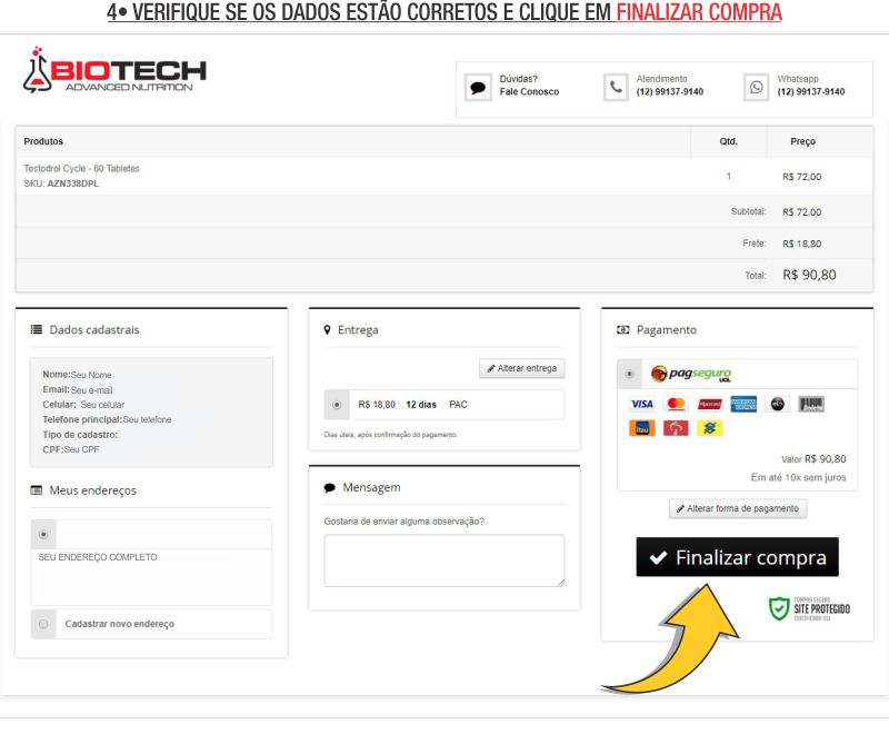 Loja oficial dos Suplementos Biotech Lab Pré Hormonal Testodrol Cycle e NYTROX GH. Compre com garantia de entrega. Loja 100% segura, com pagamento via CARTÕES DE DÉBITO, CRÉDITO, BOLETO, PAGSEGURO e MERCADOPAGO. Os pedidos são postados em até 24hs após a confirmação do pagamento, de segunda a sexta-feira no horário comercial.
